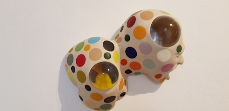 You have arrived at Luisa Catucci Gallery on Allerstr. 38! As lively as Neukölln are the exhibitions here and for Gallery Weekend they are showcasing sculptures and collages from two artists: the Spanish Lido Rico and the Italian Francesca Belgiojoso: DYNAMIC CONNECTIONS AND INNER LANDSCAPES. They are opening Friday, 6pm throughout the whole weekend. Both embrace non-conventional forms to express emotions and feelings and often make references to myths and culture of the Mediterranean Classical Age. While Rico’s sculptures use the brain as a protagonist to recreate human forms – he even uses himself as living calc for his creations, Belgiojoso explores the abstract side of our mind, meaning human psychology and the subconscious. The mix of those two artists results in a beautiful combination of colors and textures – a feast for the eye at the end of our bike tour.