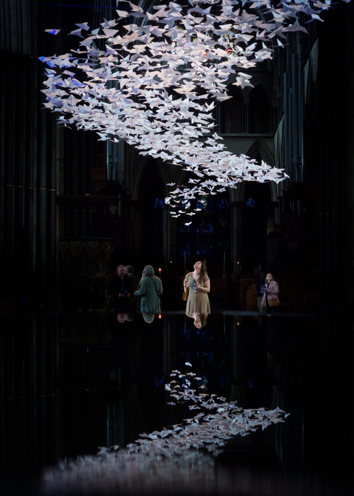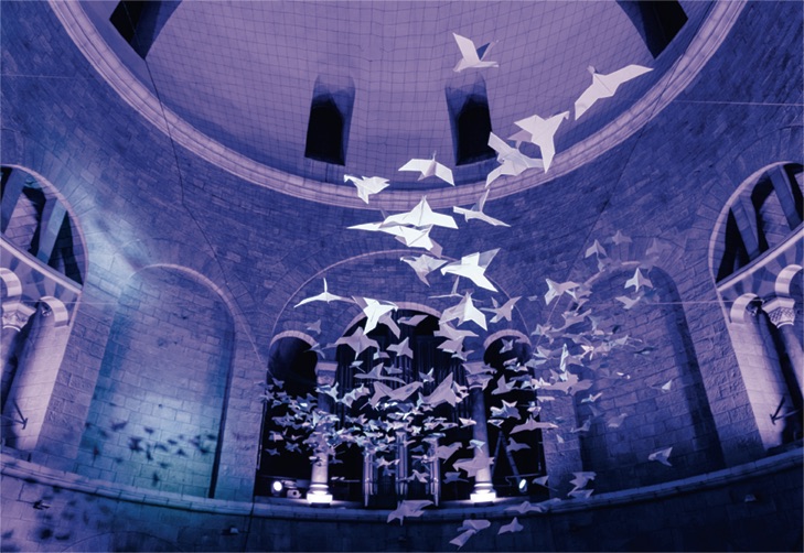 Five years ago, multimedia artist Michael Pendry sent his site-specific multimedia installation Les Colombes consisting of two thousand origami doves on a on a journey through churches around the world, from Jerusalem, to Salisbury, New York and San Francisco to spread message of peace and hope.