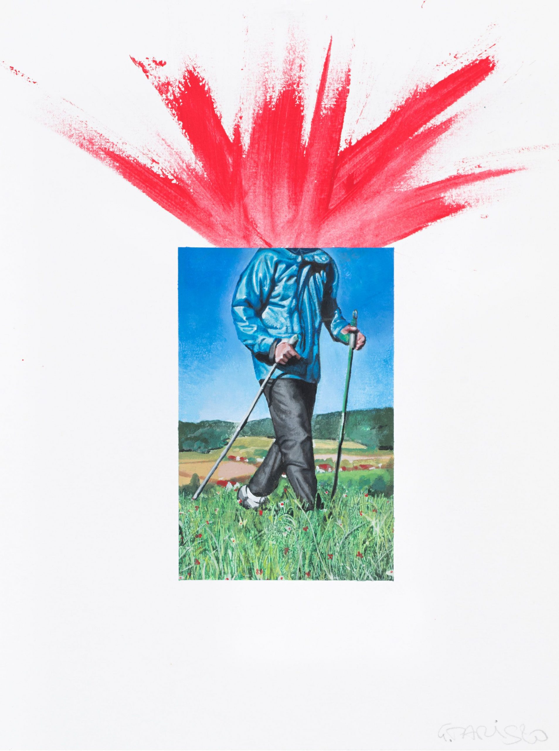 Paris Giachoustidis, ICH GEHE WANDERN OHNE KOPF, 2020 Acryl auf Papier | 48 x 36 cm
