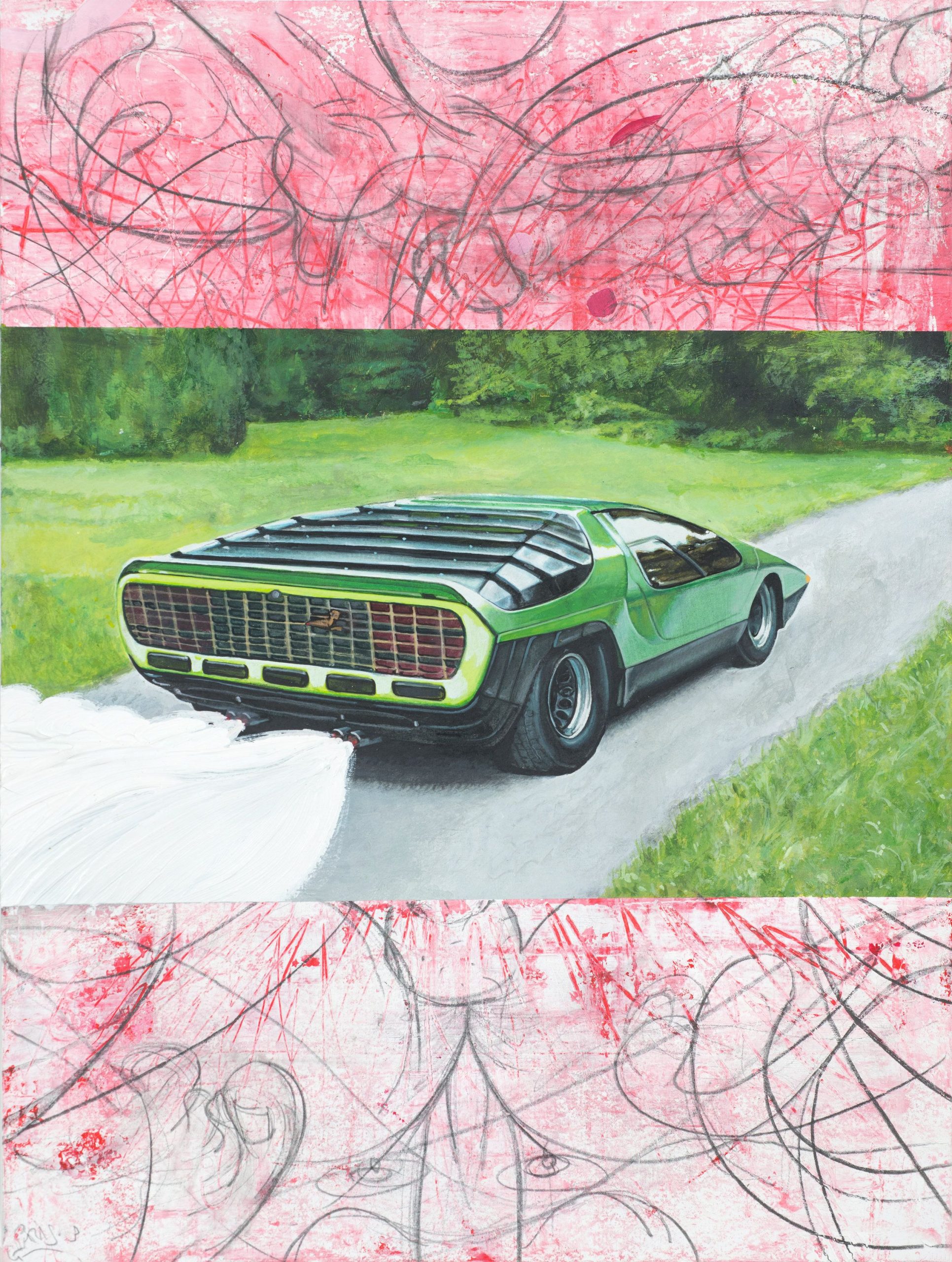 Paris Giachoustidis, OHNE HANDTUCH AM BERGSEE, 2020, Acrylfarbe auf Papier, 95 x 125 cm