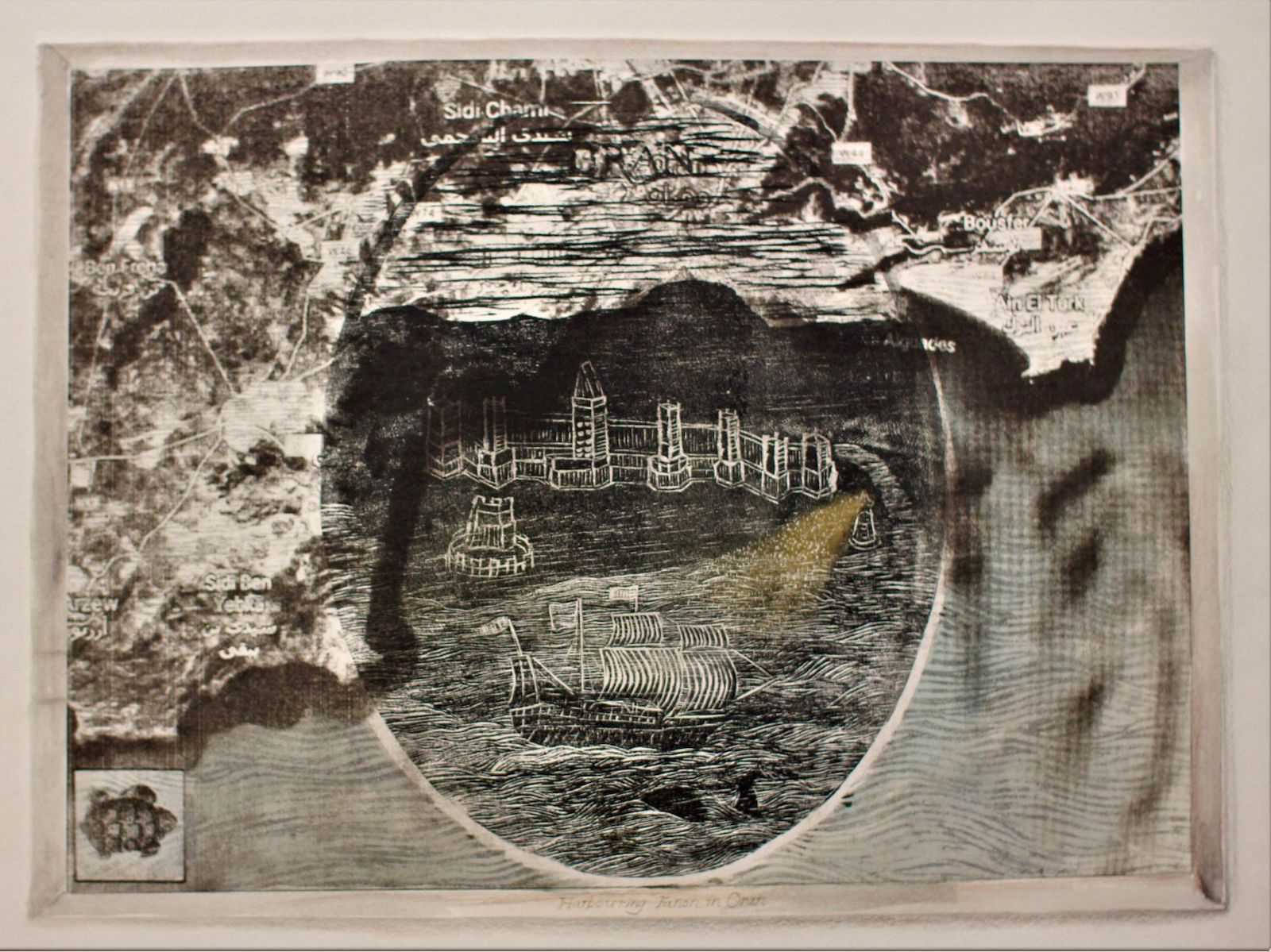 Je développe actuellement plusieurs projets. J’ai récemment terminé une série d’estampes intitulée Harbouring Fanon et je suis sur le point de les éditer. Cette série de dix gravures associe le concept de port à la fois à un lieu littéral, un espace dans lequel les navires sont ancrés et où les marchandises, les idées et les langues sont échangées, mais aussi à la notion plus abstraite de refuge comme métaphore de nos opinions et visions que l’on abrite, cautionne, protège.