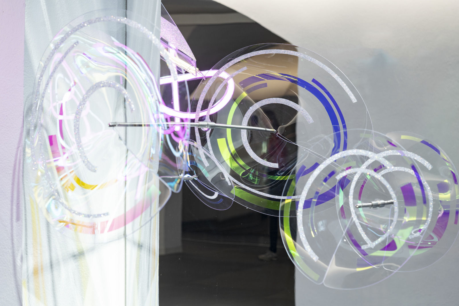 La signature de cette artiste se lit tout particulièrement dans les textures. Susanne procure de la légèreté au plexiglas et aux films acryliques, ces matériaux artificiels qui ici devinent fluides et semblent couler tout naturellement. Les reflets, superpositions et jeux de couleurs qui en résultent nous offrent de nouvelles perspectives de découvertes et de surprises. On accède alors à un espace stimulant et inattendu qui captive notre regard.
